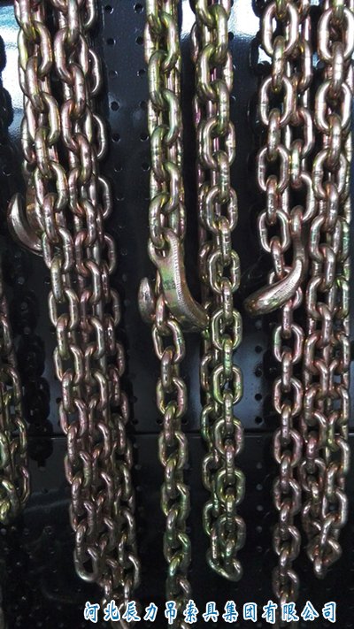 圖為辰力公司生產的鍍彩鋅起重鏈條,客戶可選擇鍍白鋅、拋光、發黑、噴漆、滲碳等多種表面處理方式的起重鏈條,外表光澤美觀,可來我公司參觀展示的樣品。圖中鏈條上加有彎鉤,主要用于鏈條式組合索具使用時讓鏈條盡快處于穩定狀態。聯系電話:0312-8037111(辦公室)